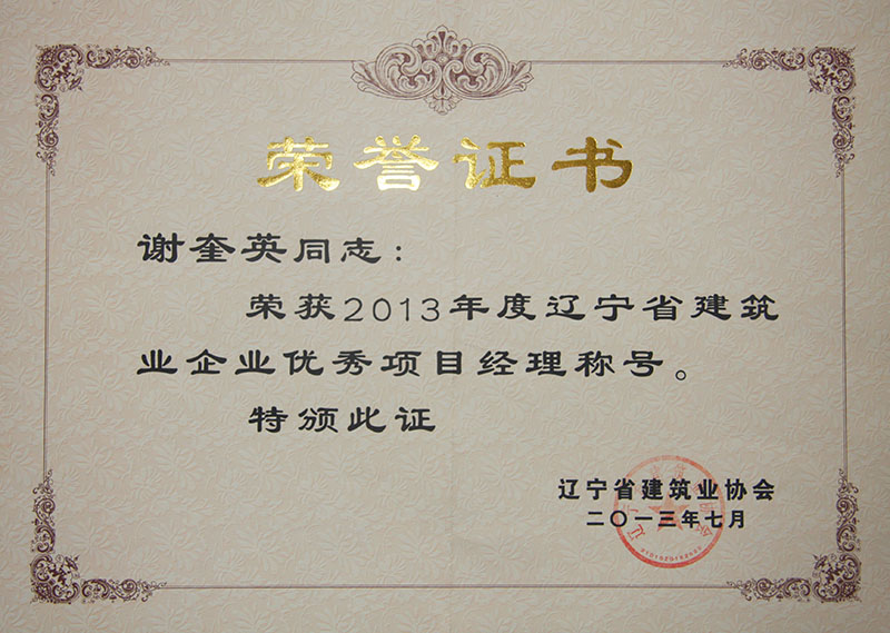 2013年度遼寧省建筑業(yè)企業(yè)優(yōu)秀項目經(jīng)理