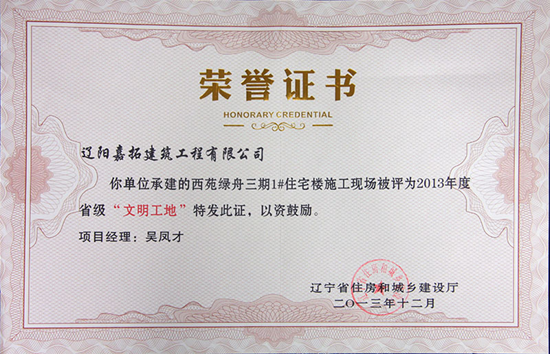 2013年度省級“文明工地”