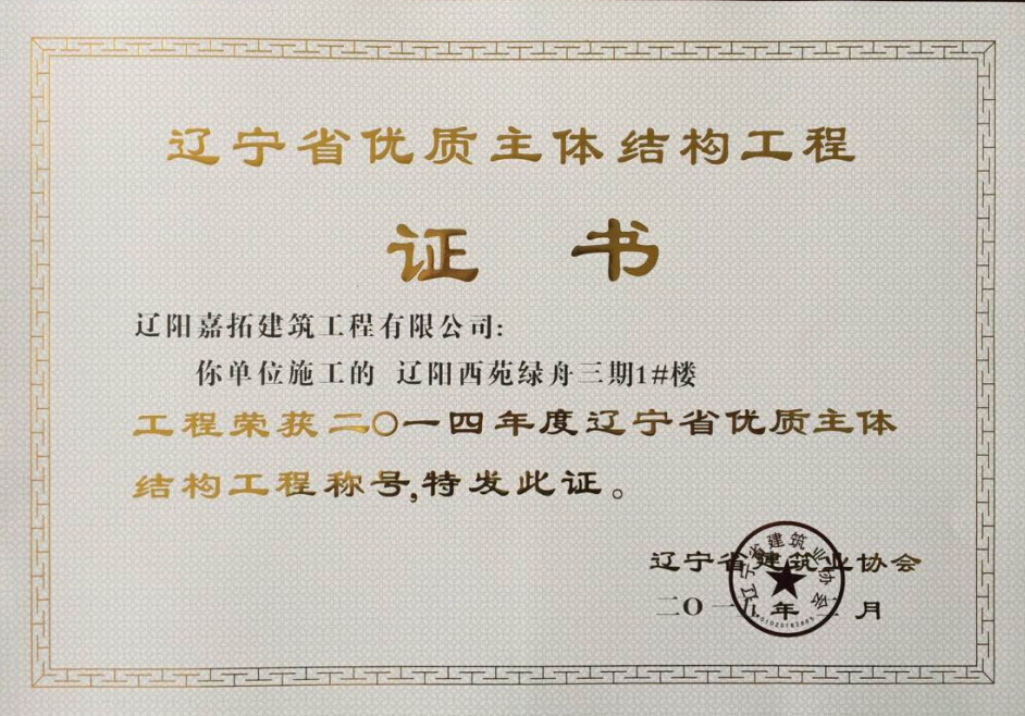 2014年度遼寧省優(yōu)質(zhì)主體結(jié)構(gòu)工程