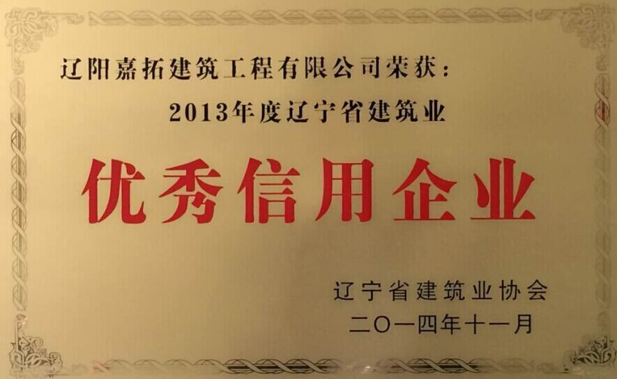 2013年度遼寧省建筑業(yè)優(yōu)秀信用企業(yè)